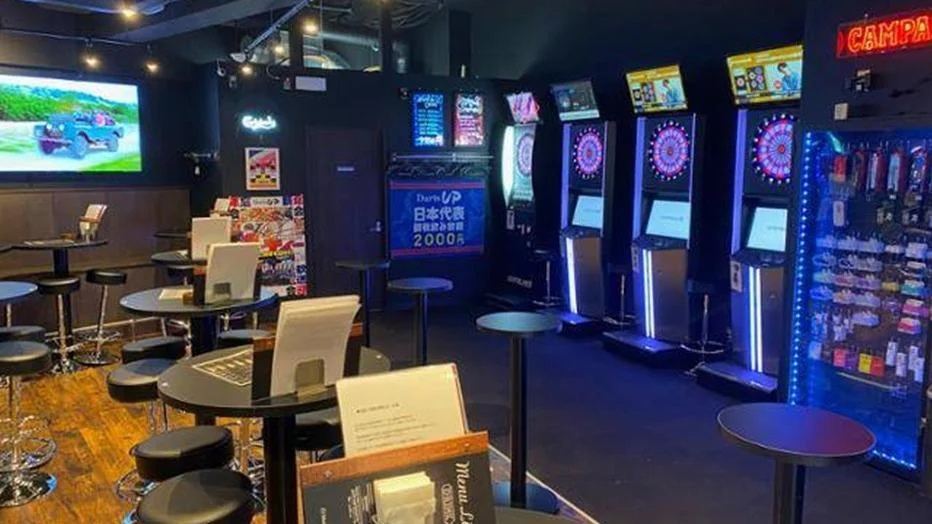 ダーツマシンや大型モニター、音響・映像設備が充実したエンターテインメントバーです。