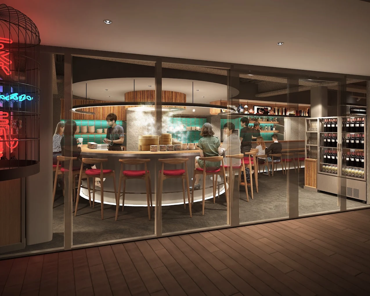 蒸し器を囲むライブ感のあるカウンター席が特徴の、モダン中華ビストロです。