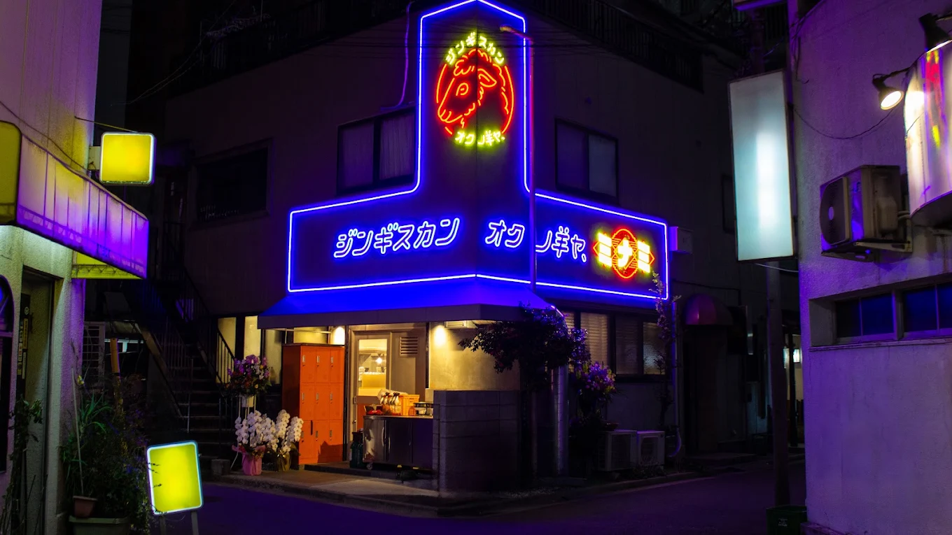 ネオンが印象的な洗練された店内は、最大20名までの小規模貸切に適した空間となっています。