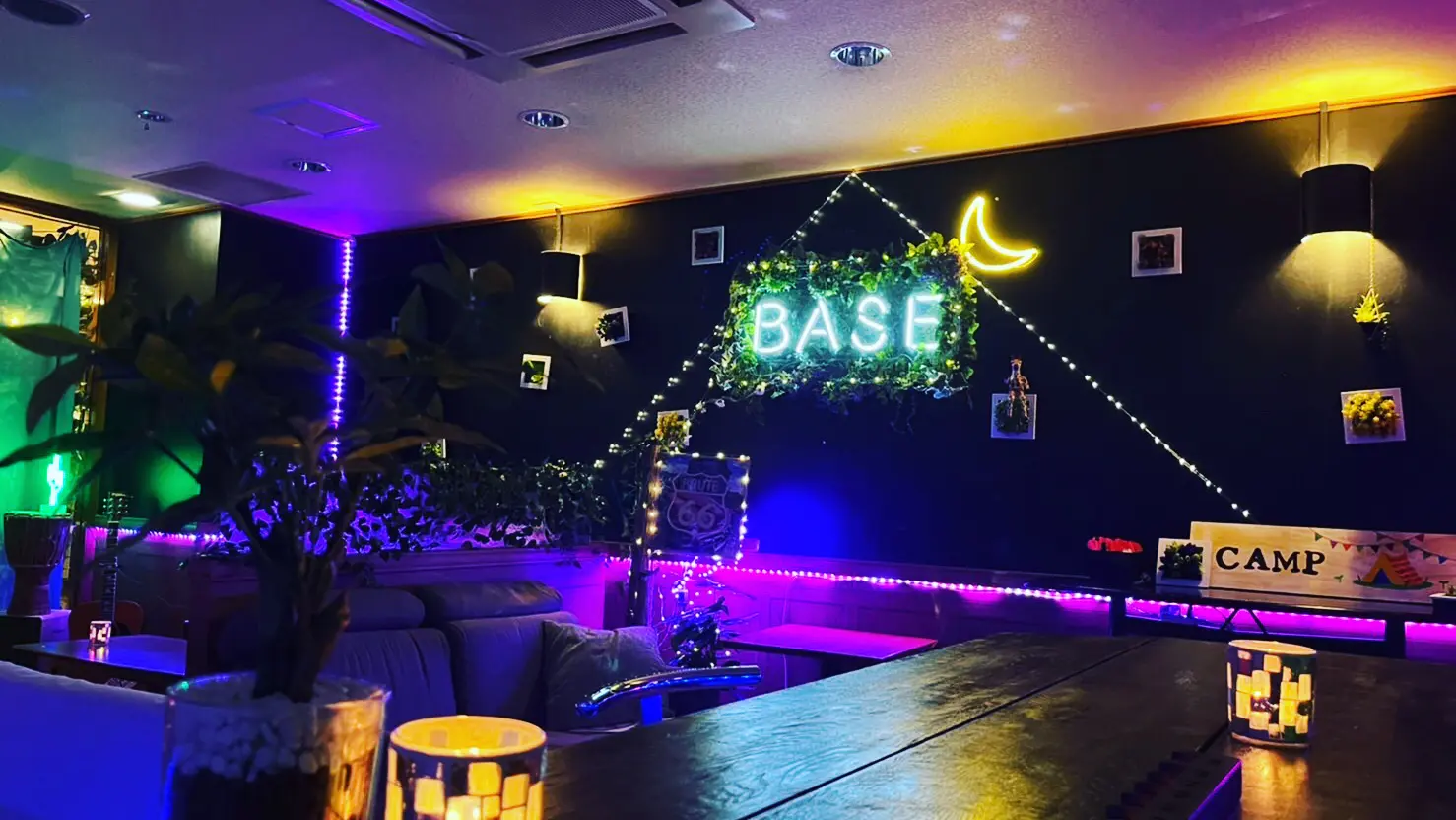 西院駅から徒歩5分の場所にある隠れ家BAR & spice curry BASEは、地下ならではの音響環境を活かしたイベントが楽しめる貸切バーです。BGMの音量を上げやすく、ライブイベントや交流会、ゲーム大会など幅広い用途に対応しています。製氷機が使い放題で、調理器具や食器類も充実しており、本格的なパーティー演出が可能です。