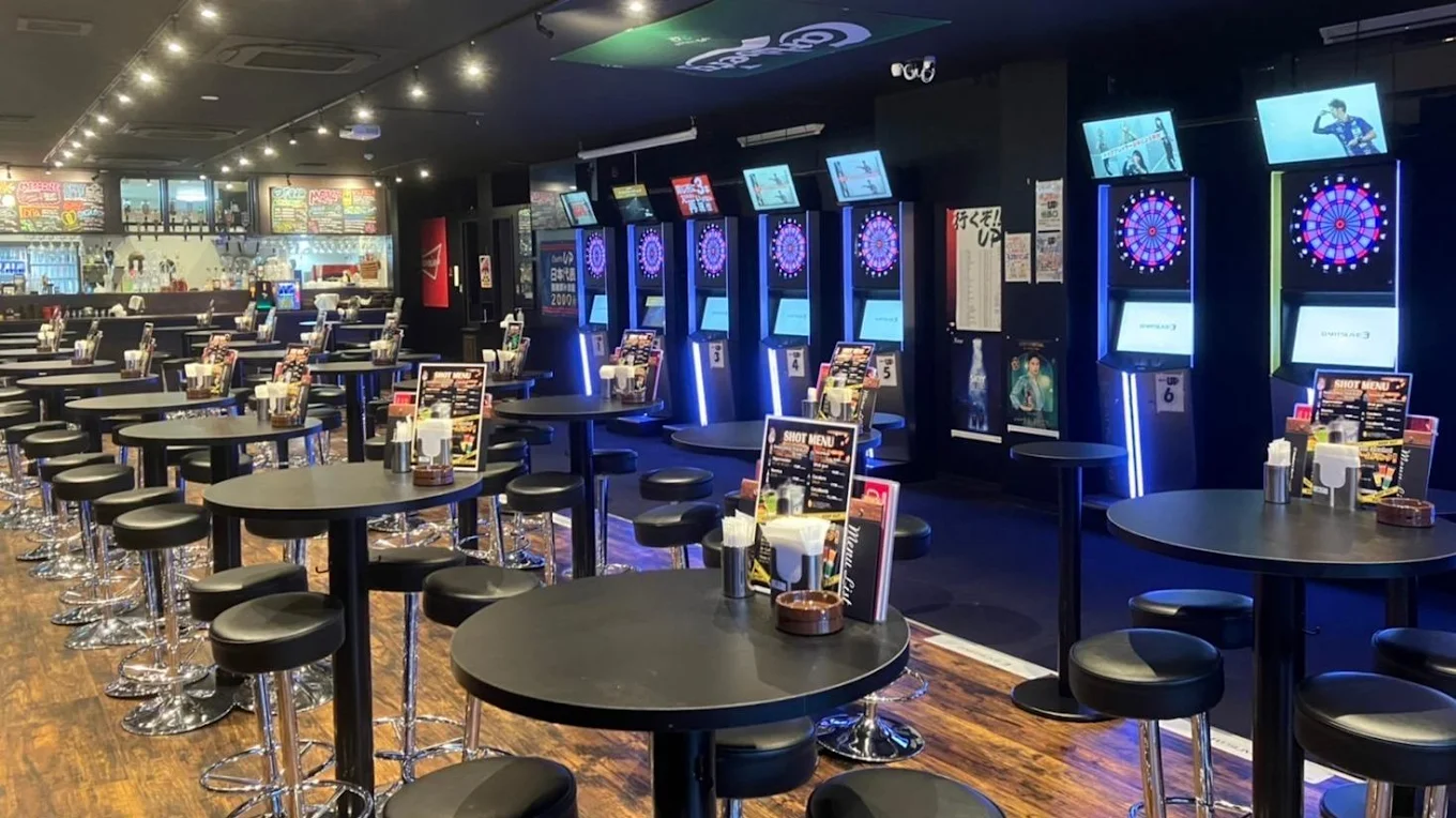 ダーツマシンや大型スクリーン、音響・映像設備を備えたにぎやかなパーティスペースです。