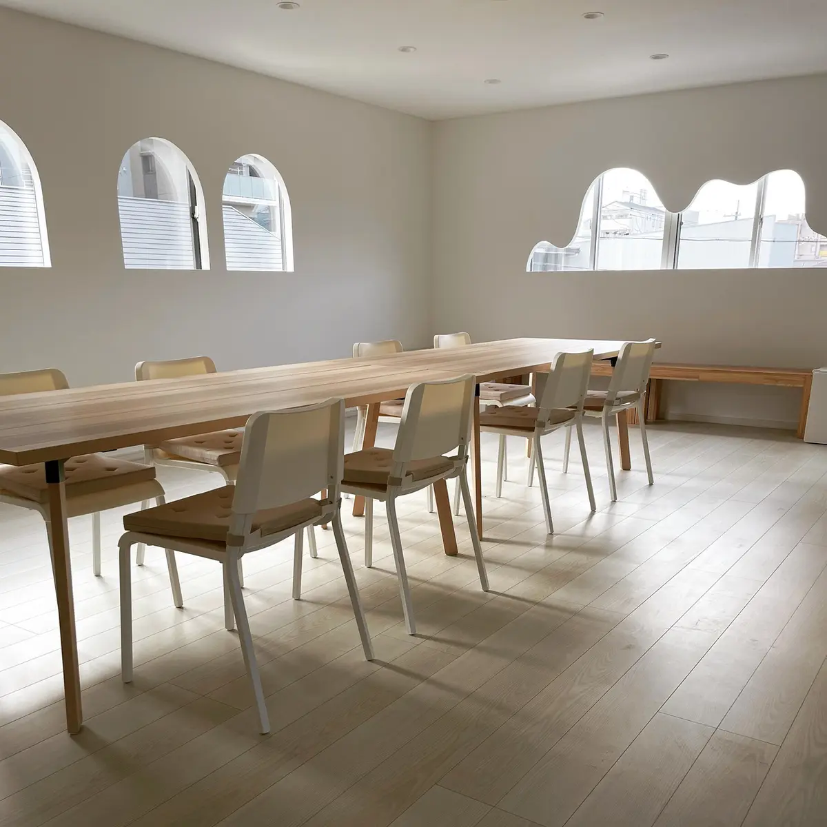 高の原駅から車で5分の場所にあるこちらのスペースは、工務店兼雑貨屋内に設けられたナチュラルテイストの個室レンタルスペースです。グリーンや雑貨に囲まれた空間には自然光がたっぷり差し込み、商品撮影やポートレート撮影に適した環境が整っています。少人数利用に特化しており、女子会やママ会、誕生日会など落ち着いた集まりに向いています。
