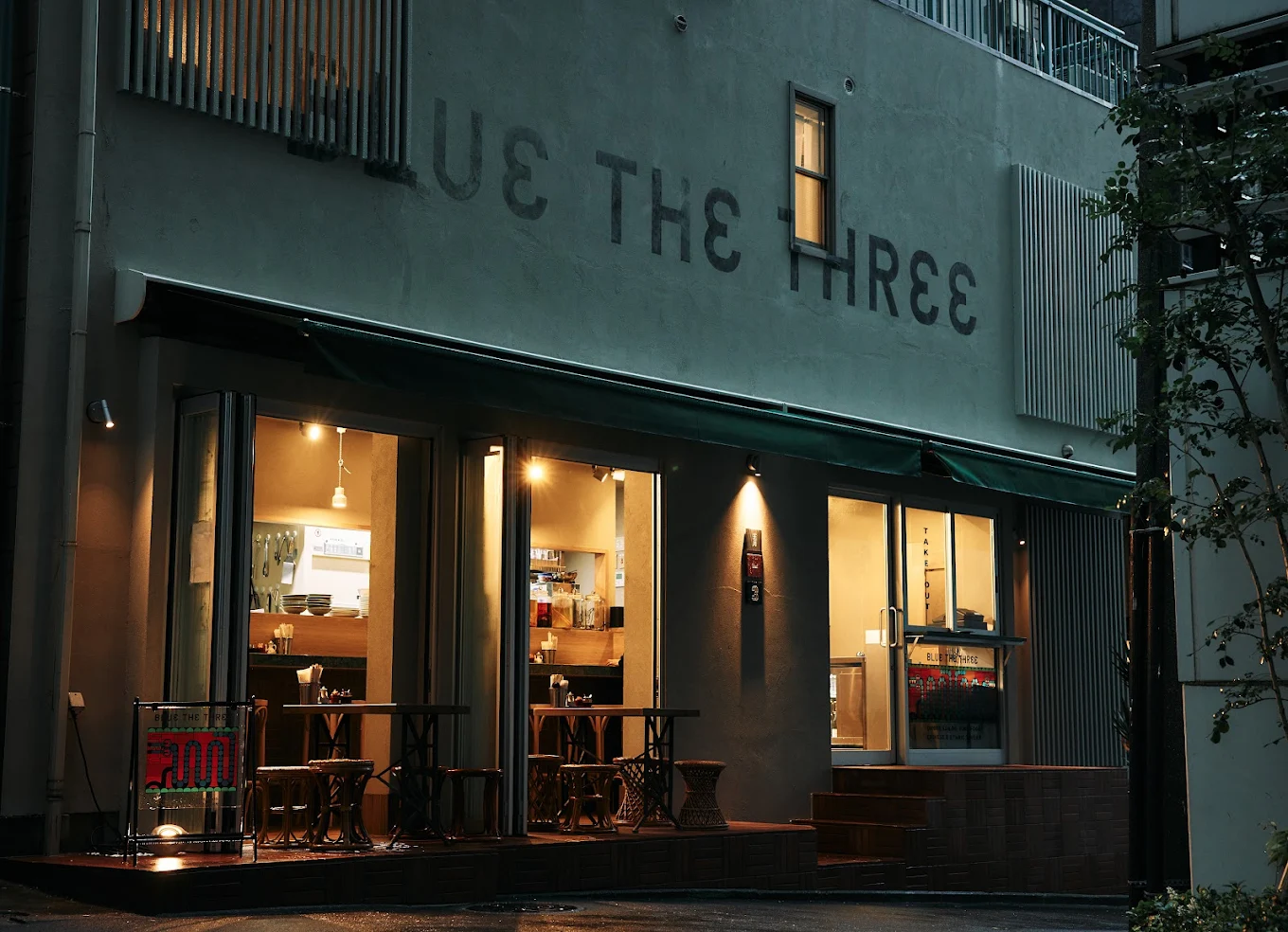 表参道駅A4出口から徒歩約2分の路地裏にある、隠れ家的な雰囲気が魅力の中華料理やエスニックが味わえるBlue the Three(ブルー・ザ・スリー)