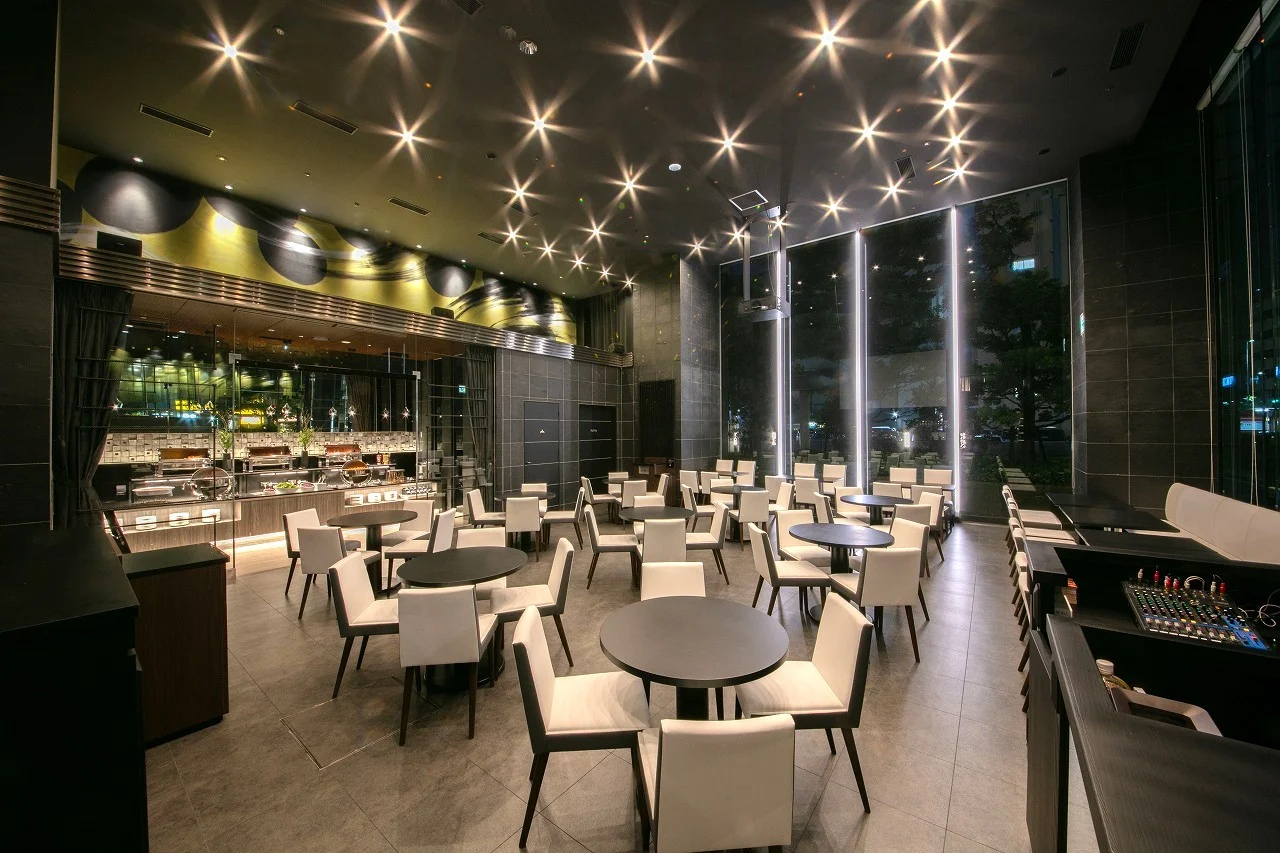 アクセス抜群のモダンな空間で、ビュッフェ形式の料理と飲み放題付きのプランを楽しめ、特別な日を演出できます。
