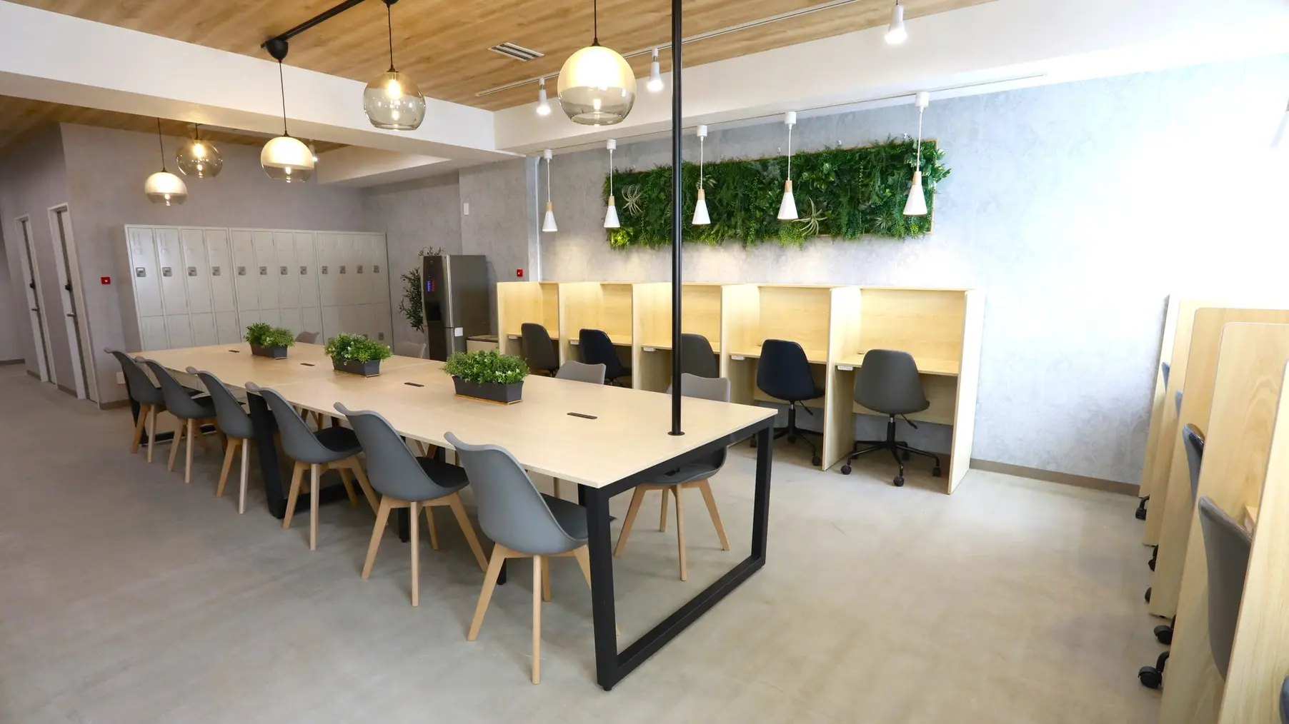 仙台駅西口から徒歩8分の場所にあるコワーキングスペース_杜の都ものづくり大学は、清潔感と落ち着きのある雰囲気が特徴の貸切対応スペースです。超高速Wi-Fi6やモニター、ホワイトボード、全席電源、フリードリンクなど、ビジネスや学習に適した設備が充実しています。平日日中はスタッフ常駐のため、初めての利用でも安心してイベントを開催できます。