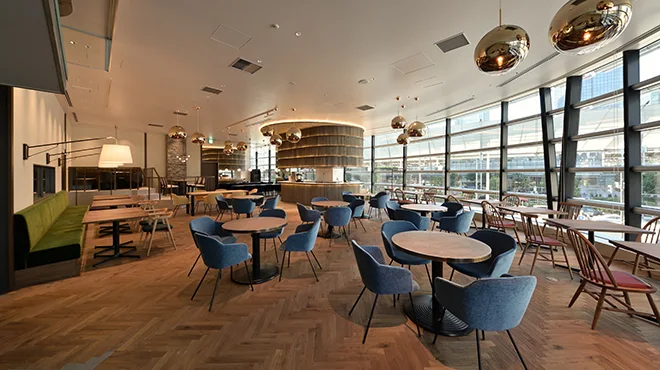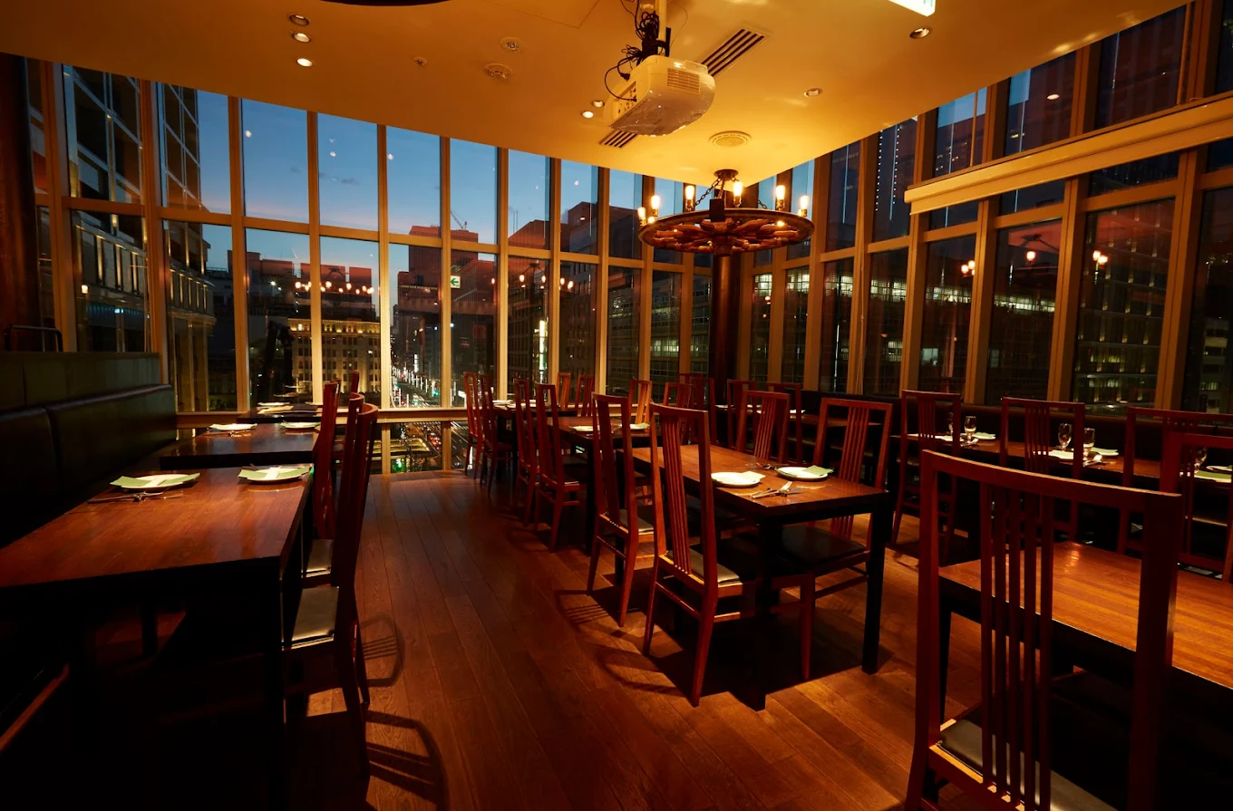 コレド日本橋の最上階に位置し、天井まで届く大きな窓から日本橋の街並みを一望できるダイニングです。