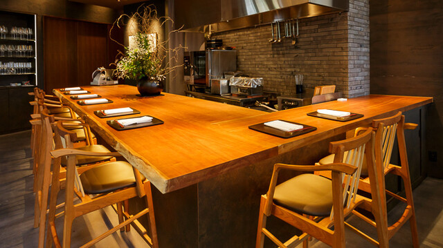 カウンター席では、料理を仕上げるシェフの手元を間近に見ながら、五感で味わう特別な時間を過ごせます。